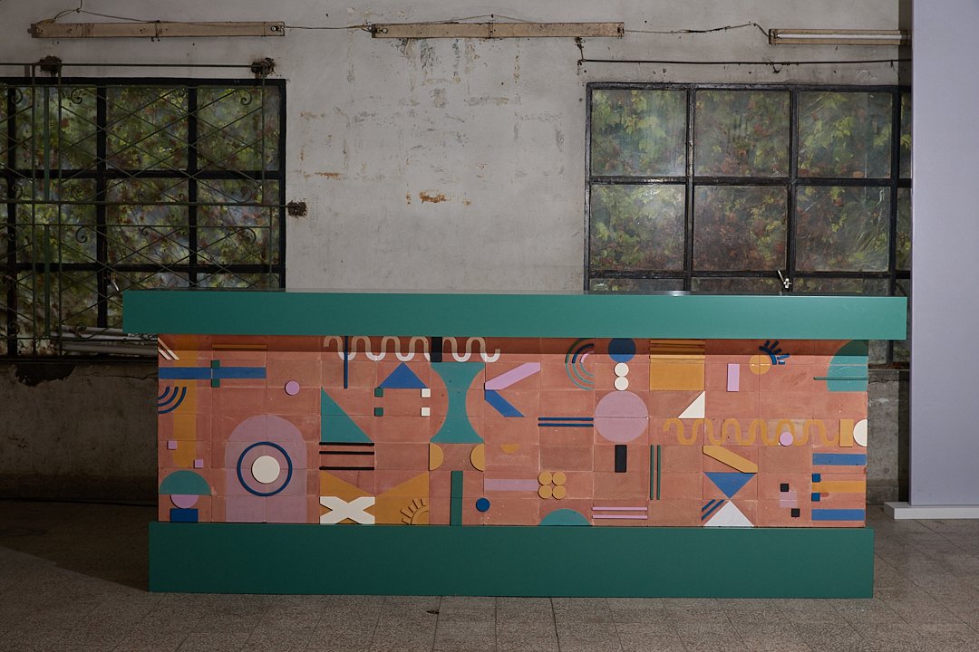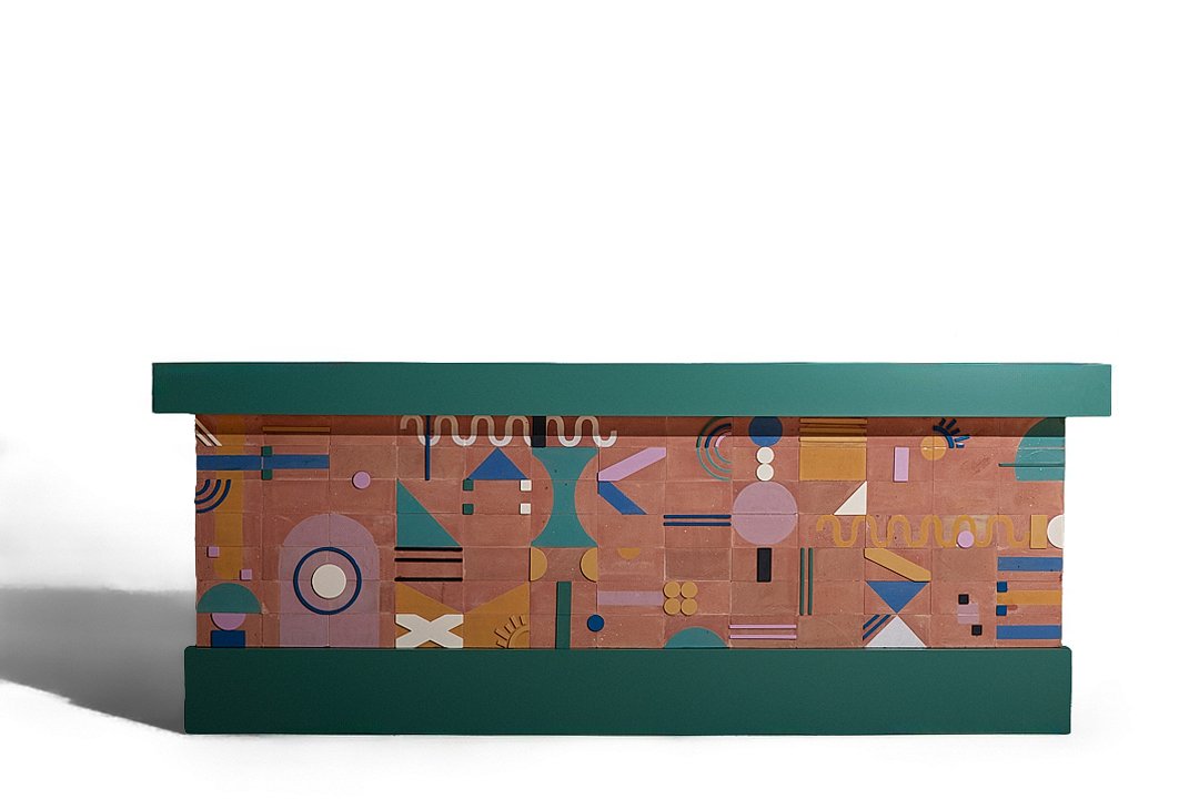 We’re thrilled to introduce our first ceramic tile bar unit -a playful and handcrafted fusion of design and function. Built with terracotta clay tiles featuring colorful hand -glazed doodles, the piece brings warmth and creativity into any space. The bar is topped with a sleek wood countertop and illuminated by an integrated LED strip light running along the upper edge, creating a soft, ambient glow. From the service side, the unit is intentionally left open, allowing flexibility for kitchen appliances, storage cabinets, or customized shelving, making it adaptable for both residential and commercial settings.