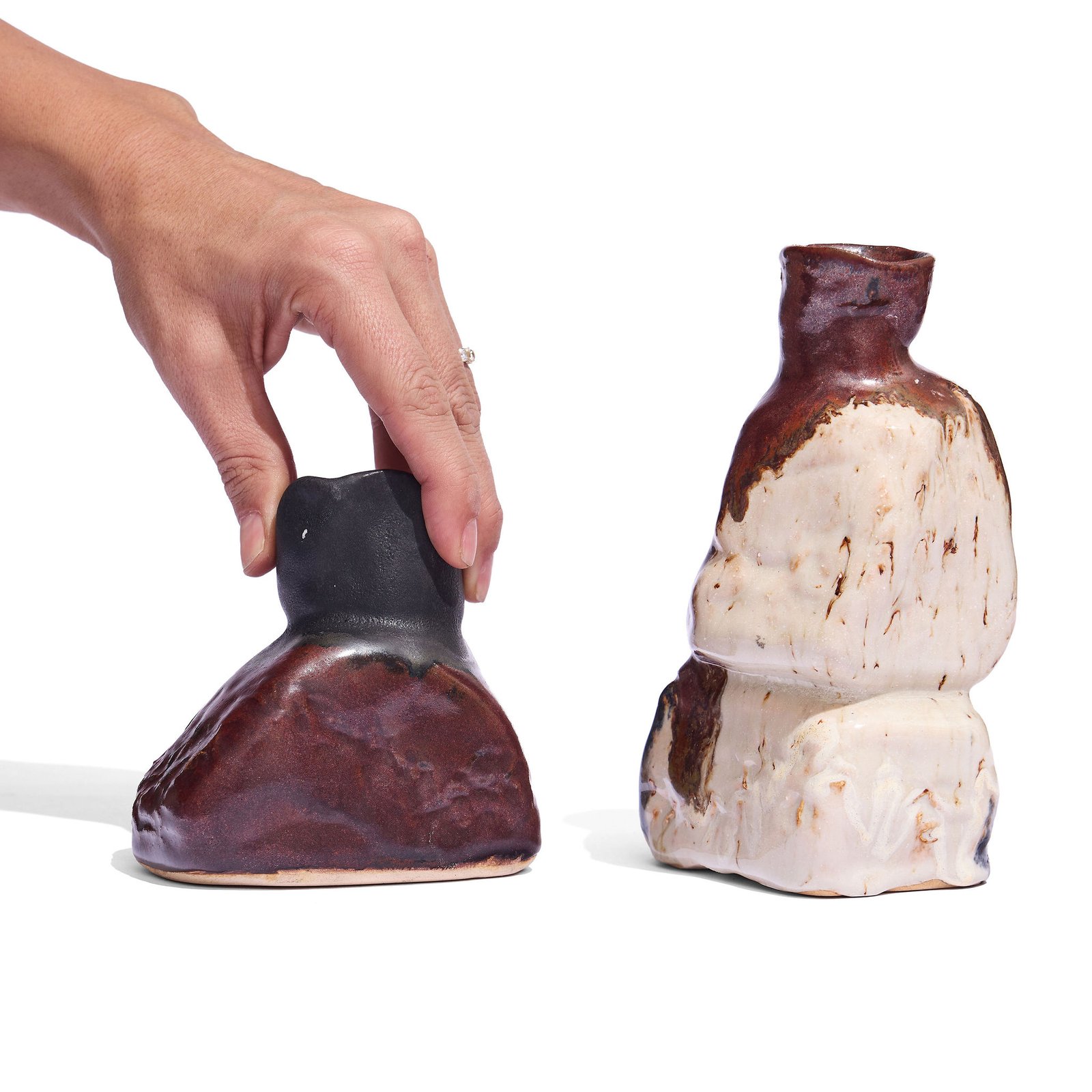 On the Rocks explores the grounding presence of stone and the natural balance found in stacked, organic forms. Each piece is shaped to echo the quiet strength of rocks: distinct, irregular, and never repeated. No sculpture is identical to another; every form carries its own weight, rhythm, and character. The collection moves between function and sculpture, celebrating the calm, steady beauty of shapes inspired by nature and refined by hand and fire.