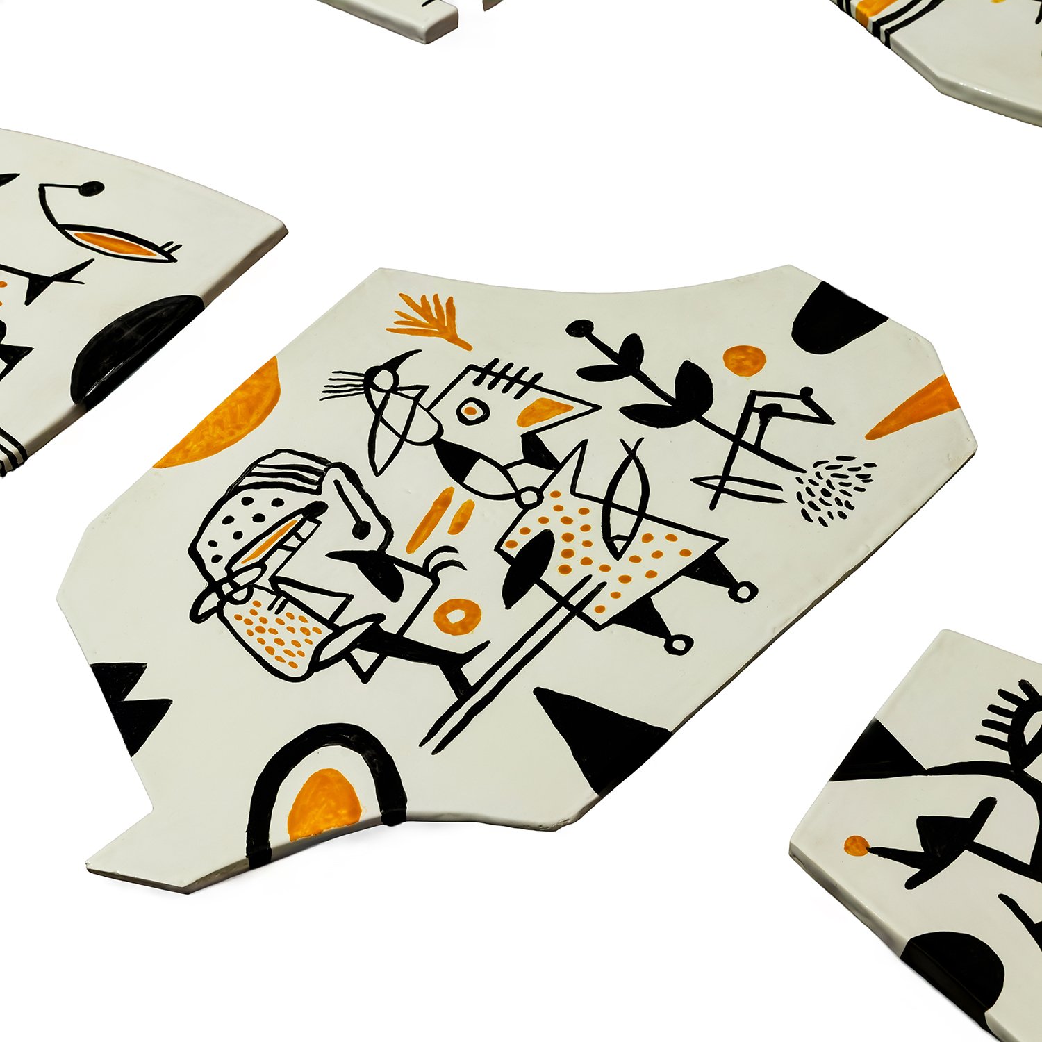Ceramic doodling wall art, set of 15.