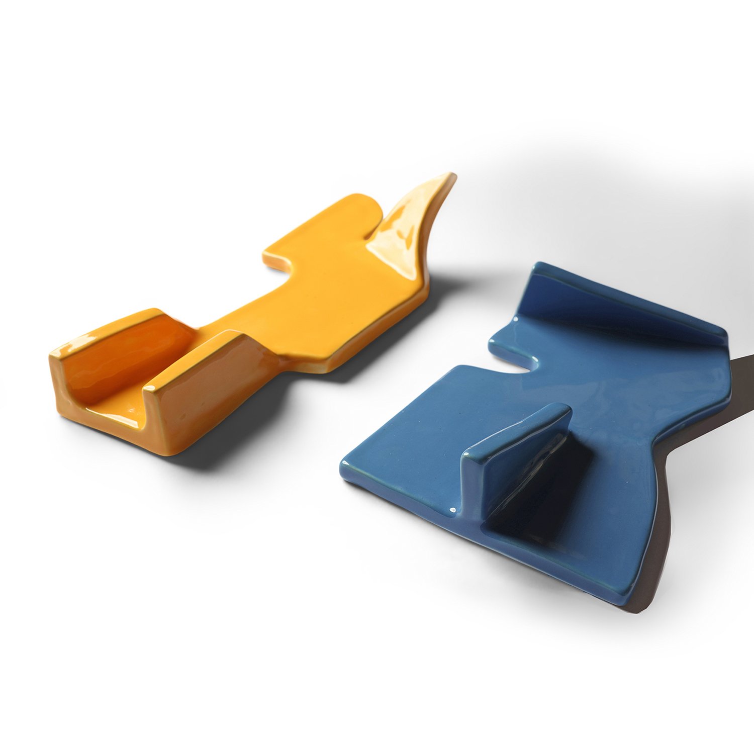 Ceramic wall art, set of 2, blue and yellow.