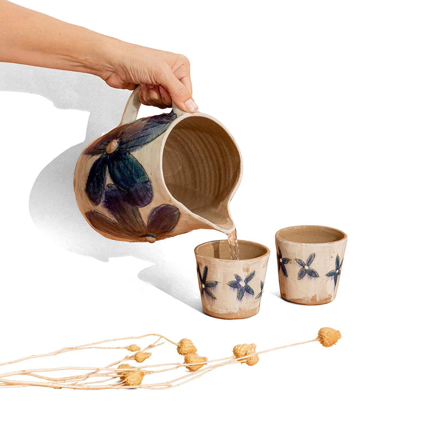 Ceramic stoneware hand carved brown cups.